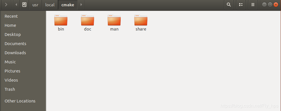 进入目录后会看到只有 bin doc man share三个文件夹,没有 bootstrap文件,因为新版本的好像是已经编译好的,所以只要加入path里面就可以在命令行直接使用命令了,在这里笔者将上述cmake安装包文件移动到了/usr/local/cmake位置: