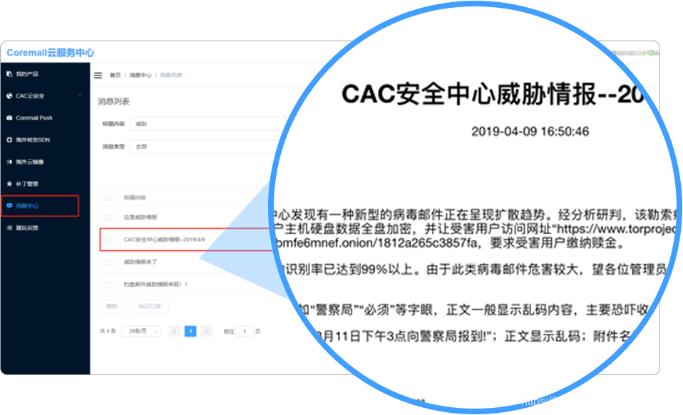 Coremail针对现在邮件安全现状,部署了国内首个商业CAC反垃圾云,能在线对最新垃圾邮件样本进行实时分析,以智能算法学习+人工严格审核双重服务机制,高效识别拦截垃圾邮件。并通过在国内部署过百万的探针邮箱,在满足数量充足的情况下,保证及时收集到最新的垃圾样本。