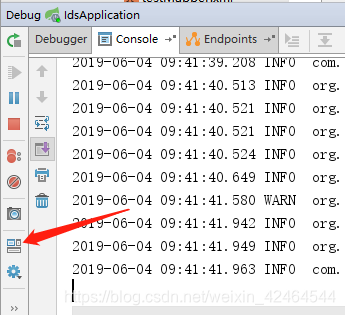 然后点击这个按钮就出现了console了。 有的console和endpoints是合并的,仔细一点就好了。如果你也出现了这样的问题,大可以去试一试。我的就是因为Console不小心hide了造成的,希望能对你有所帮助。