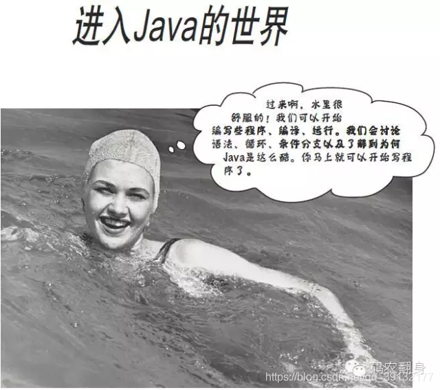 如果我之前没学过别的语言,或者半路出家转到计算机行业, 我不会先看上面那两本, 相反我会选《Head First Java》, 这本书非常适合零基础的小白, 读起来轻松搞笑, 不信你看看第一页。