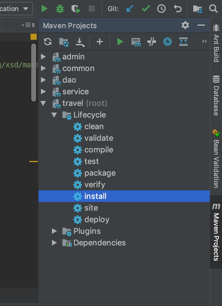 Maven Projects视图 异常模块中 双击install执行一下