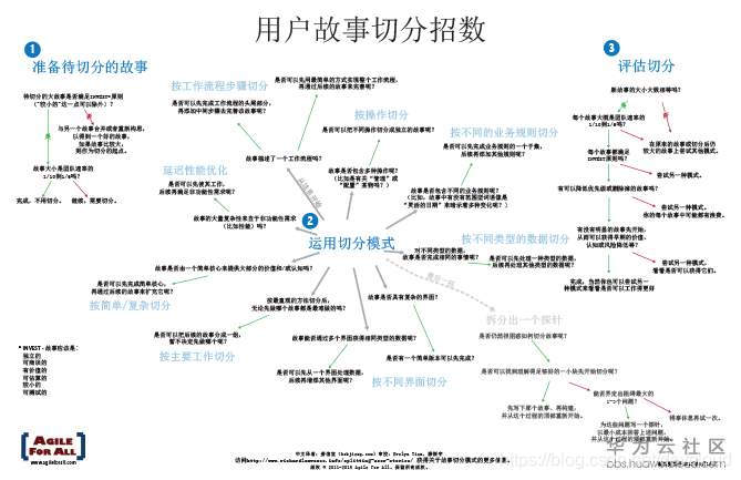 目前业界比较好的方法是Richard Lawrence的方法,原文请参考https://agileforall.com/patterns-for-splitting-user-stories/,下图为已官方翻译的中文版本。