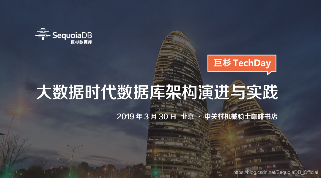 3月30号,本周末我们巨杉Techday的第二期活动也会在北京举办,我们也会带来一些深度的技术分享,届时也会有现场的视频直播,希望大家也能多多关注和参与!未来我们也会有更多“神秘”的数据库“老司机”给大家带来技术、趋势、见闻的分享~