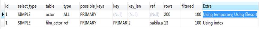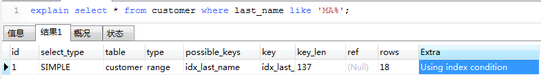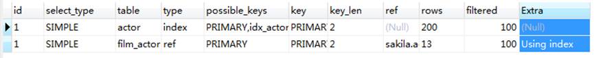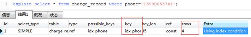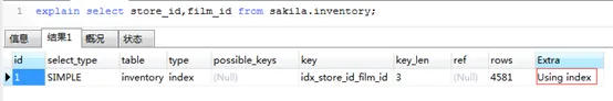 Extra信息中显示使用了索引。