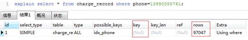 select * from charge_record where phone=‘13990055761’;