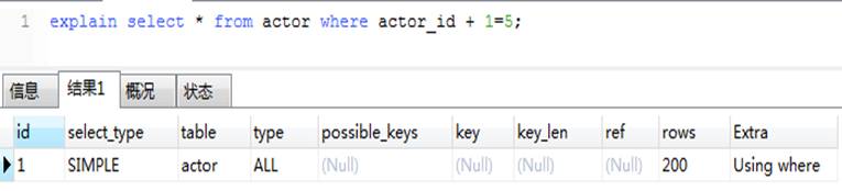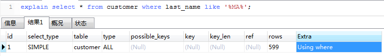 rows列显示599行,也就是customer表的总行数,因此没利用到索引。