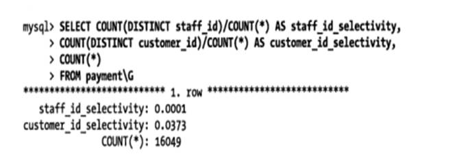 如何确定选择性更高的字段: (SQL摘抄自《高性能MySQL》)