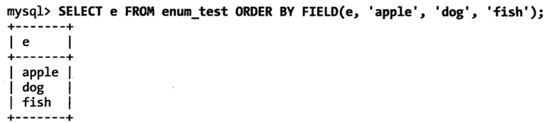 从上图中的select e from enum_test order by e;的结果可以看出,排序结果与建表时的顺序一致,如果需要按字符创的字母顺序排序,则需要通过额外的方法来处理,比如: