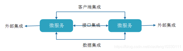对于微服务架构而言,我们的思路是尽量采用标准化的数据结构并降低系统集成的耦合度。微服务架构中服务之间的集成模式主要分为以下四类,具体如图所示: