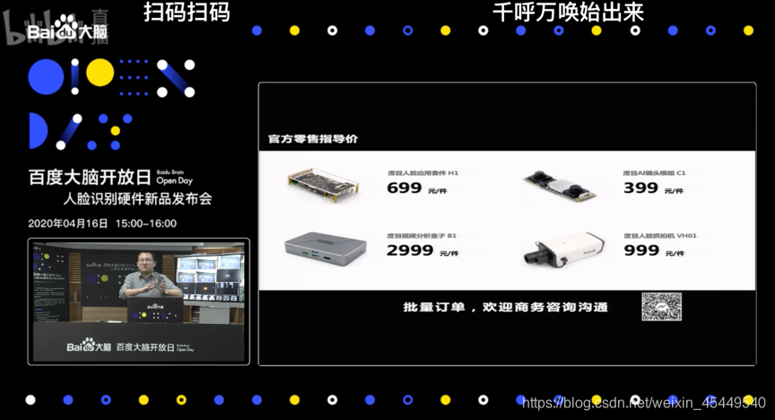 相比其他人工智能技术,人脸识别技术落地的门槛之高也显而易见:研发部署成本高、算法指标要求高、长期后续服务缺位、企业机构需要完整方案等。4月16日举办的百度大脑开放日·人脸识别硬件新品线上发布会中,百度大脑开放平台推出视觉硬件品牌“度目”,同时发布了4款自研硬件新品:度目人脸应用套件、度目AI镜头模组、度目视频分析盒子、度目人脸抓拍机,主打高灵活度、高易用性、高性价比,提升人脸应用的效率与效果。