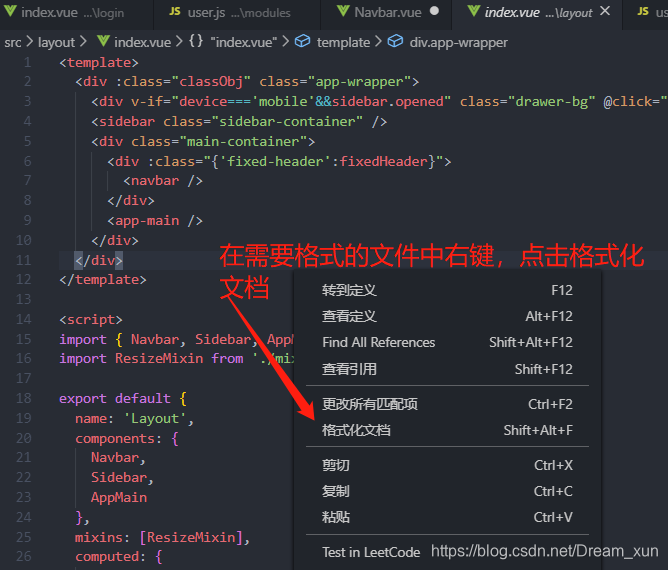 2. 选择要格式化的文件,右键选中“格式化文档”
