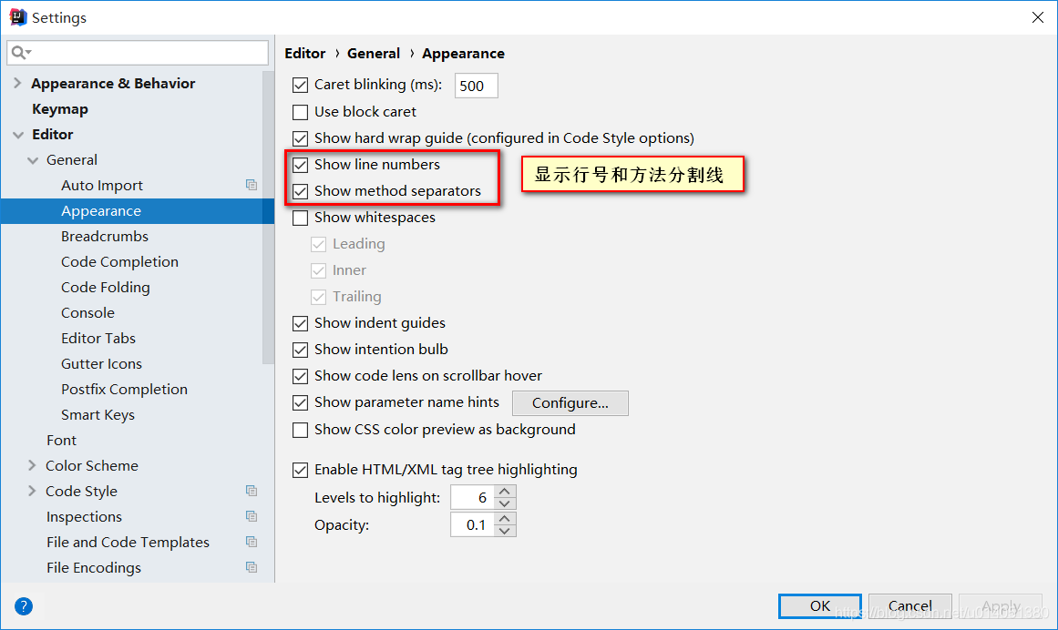 6、显示行号和代码分割线