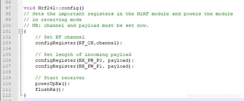 从库文件中可以看到默认通道为1,payload为16位,而设置CRC校验的寄存器CONFIG没有配置。。。
