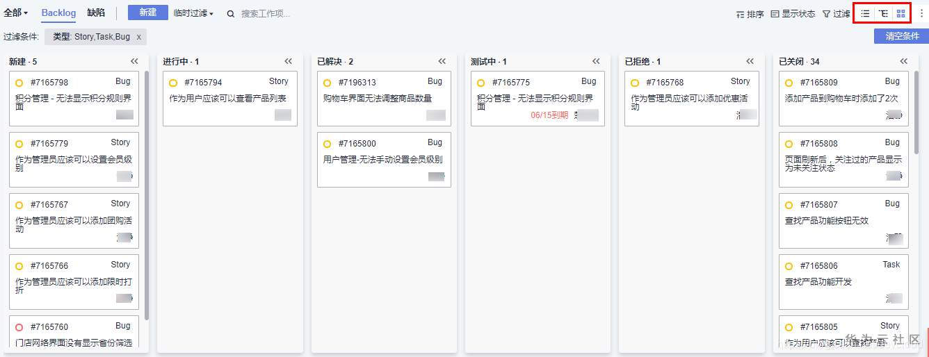 首先,Bug跟踪在早例会的直观展示。当我们开早会时,将Scrum缺陷跟踪板投屏,可以通过过滤筛选每个成员手中的Bug状态和等级,便于识别风险。