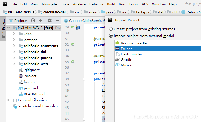 直接点New-Project from Existing Sources 选择对应的文件夹,选中从Eclipse导入即可。