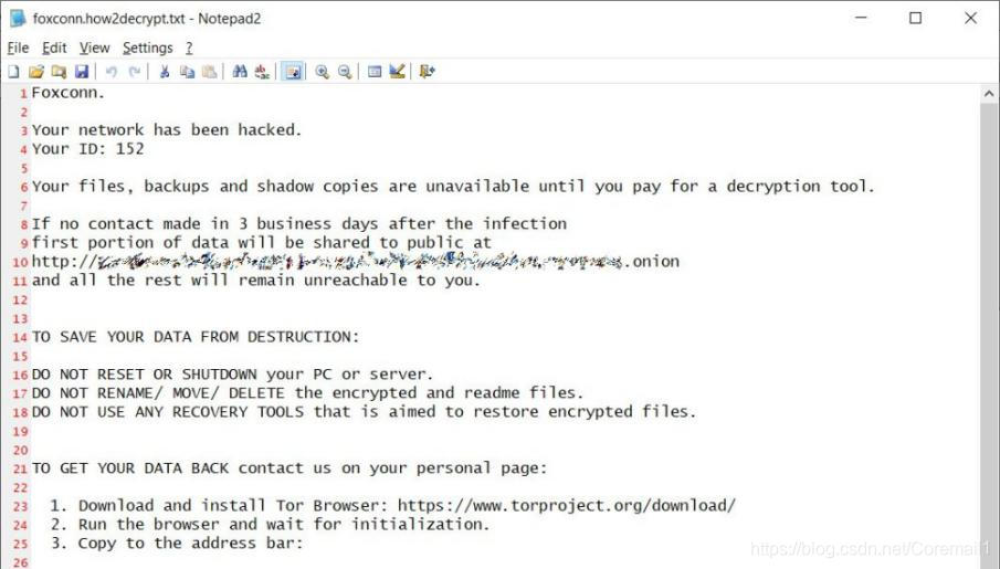 - 12月8日,富士康电子巨头在墨西哥的一家工厂遭到勒索软件攻击,攻击者在加密设备之前窃取了未加密的文件,导致100G数据被盗,黑客要求支付3400万美元。