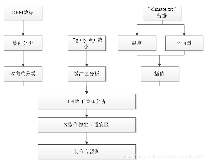 某一地区引进X型经济作物,该作物的生长环境需要满足一定的地形及气象条件。现有该地区的地形及气象数据,请你根据X型作物的生长条件,为该地区进行X型作物适宜区分析,并制作专题图。同时,梳理上述问题及其解决过程,规划出科学合理的GIS应用系统,进行系统功能及界面设计。