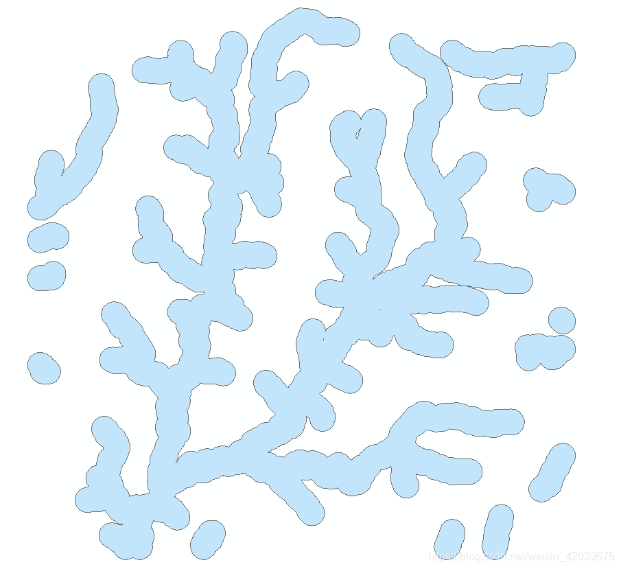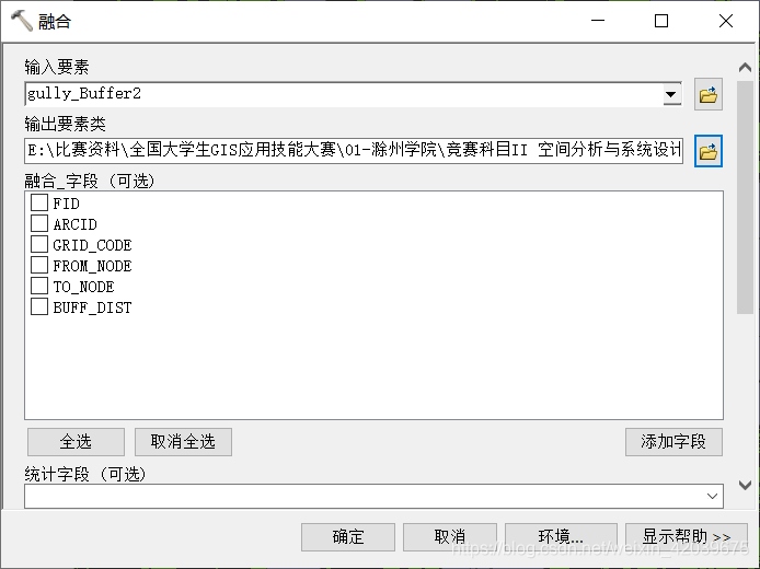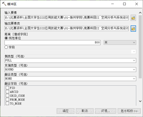 缓冲区结果存在重叠,打开【数据管理工具】——【制图综合】——【融合】工具,添加缓冲区数据,取消【创建多部件要素】,点击确定