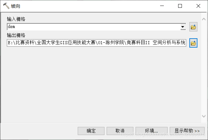 (1)打开【Spatial Analyst 工具】——【表面分析】——【坡向】工具,输入栅格选择dem数据,输出坡向数据