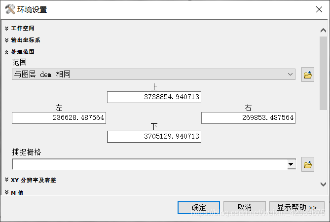 4、点击【地理处理】——【环境】,对处理环境进行统一设置,以减少重复设置地理环境的工作,并保证栅格数据处理的结果具有统一性