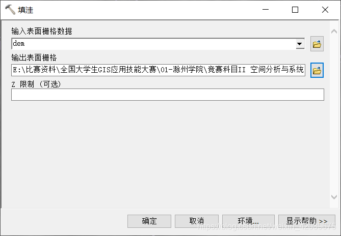(1)打开【Spatial Analyst工具】——【水文分析】——【填洼】工具,输入dem数据,选择输出路径,点击确定,进行填洼