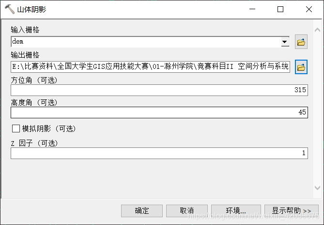 9、打开【Spatial Analyst工具】——【表面分析】——【山体阴影】工具,输入dem数据,得到山体阴影