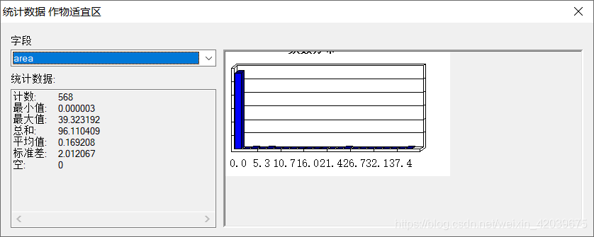 10、打开“作物适宜区”的属性表,添加字段“area”,右击该字段,选择【计算几何】,计算作物适宜区的面积