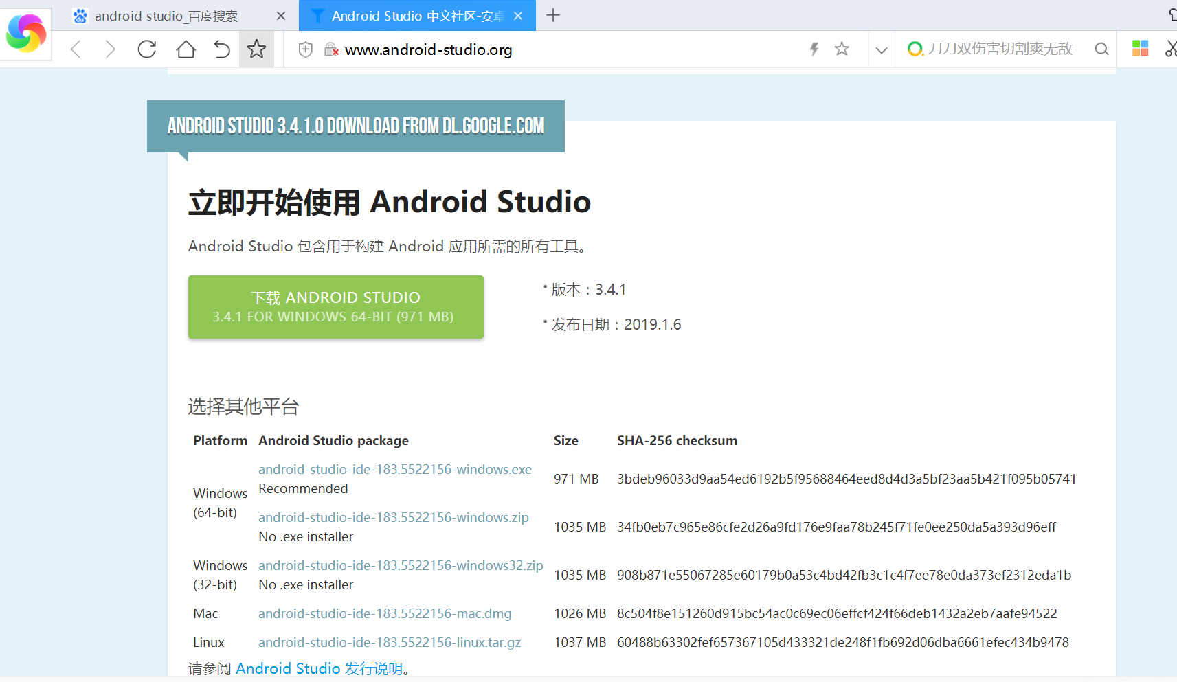 百度搜索Android studio,或者直接输入http://www.android-studio.org进入这个页面