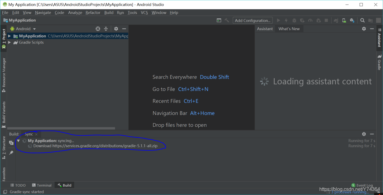 进入到C盘C:\Users\ASUS\.gradle\wrapper\dists\gradle-5.1.1-all\97z1ksx6lirer3kbvdnh7jtjg把里面的文删掉(是哪个版本的gradle就选择哪个版本的文件夹)