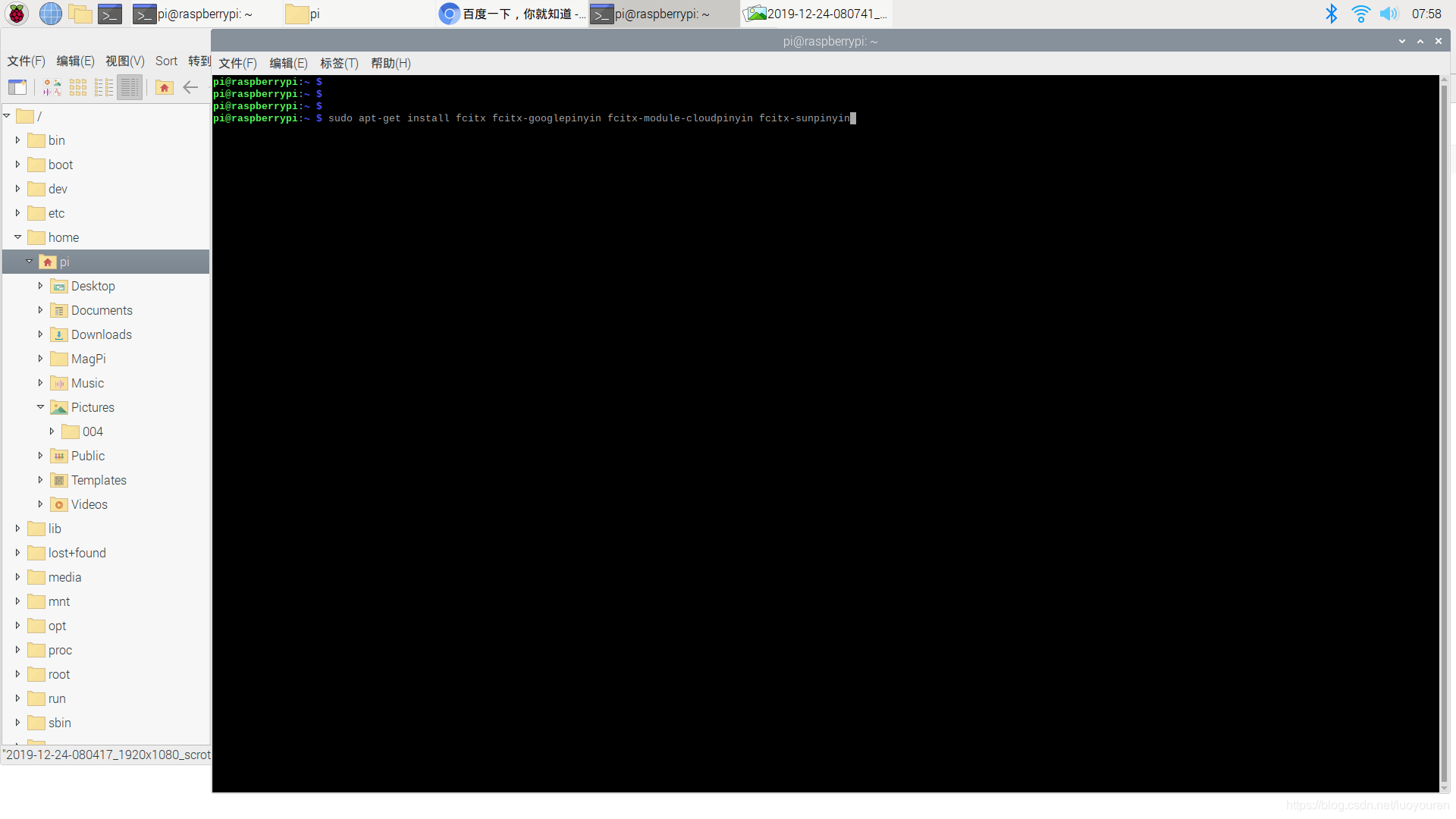 下面就来简要介绍下vim的安装和使用,还有中文输入法也是必要的,我要百度中文搜索,后面写python代码时我要写中文注释,更或者我直接在Pi上面写博客。