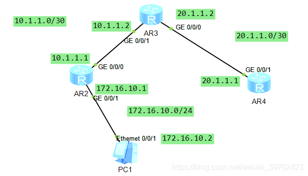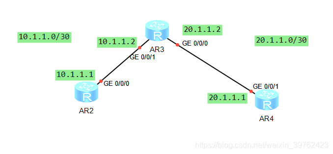 network 20.1.1.0 0.0.0.3 #这个路由器连接的右边网络,发布出去,最后是反子网掩码