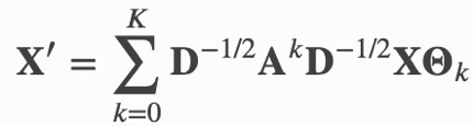 相较于堆叠多层获取多阶领域信息的GCN方法,TAGConv通过邻接矩阵的多项式拓扑连接来获取多阶领域信息。公式如下所示,可以发现,其通过预先计算邻接矩阵的k次幂,相比GCN可以在训练过程中实现多阶邻域卷积并行计算,高阶邻域的结果不受低阶邻域结果的影响,从而能加快模型在高阶邻域中的学习。在我们的实验结果上,其在稀疏图上能快速收敛并相比于GCN能达到一个更好的效果。
